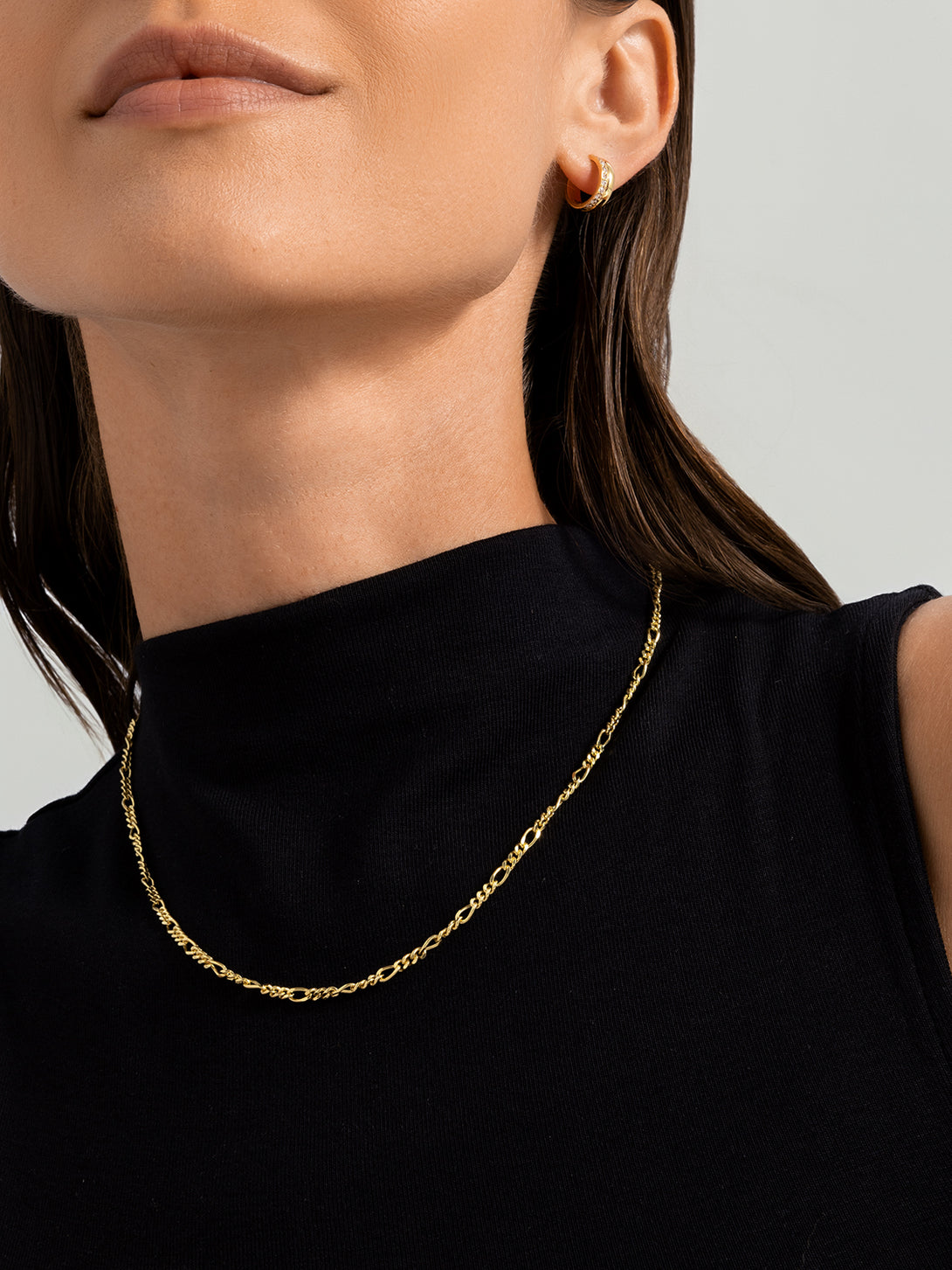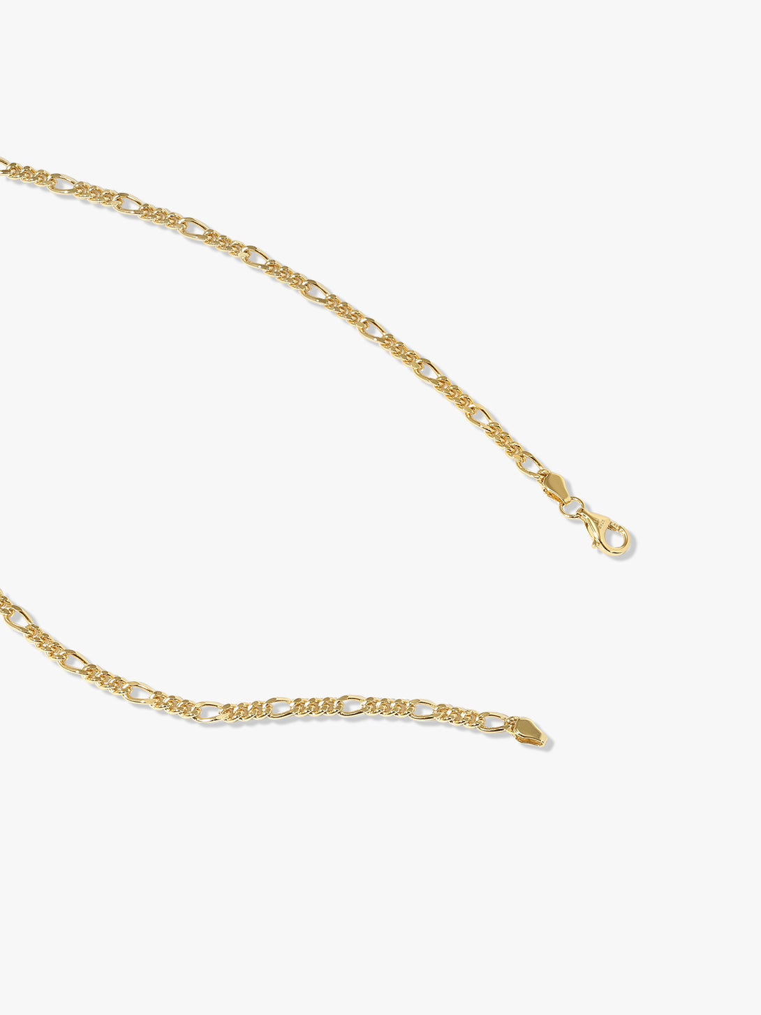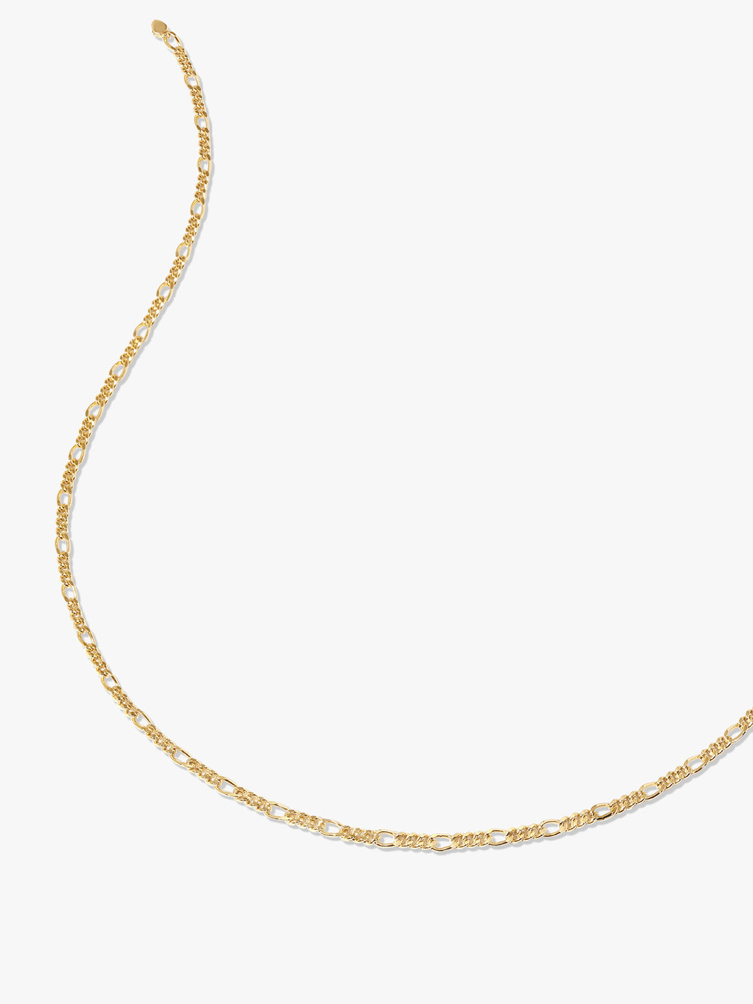 A simple essential, crafted in 18K vermeil. The Figaro chain’s balanced pattern of long and short links adds quiet detail while keeping the look clean and easy to wear. Light, minimal, and made for everyday—wear it on its own or layer it with your go-to pieces.