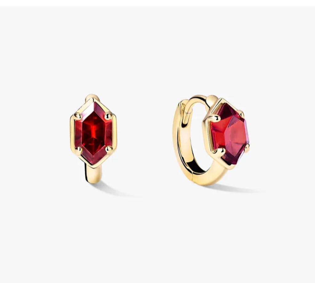 Looking for a sweet yet bold addition to your jewelry collection? Check out our Hexagonal Berry Huggie Earrings from the Hexagonal gemstones collection. These earrings feature a perfectly petite pair of Berry Glass stones, making them the perfect accessory to highlight your ears.