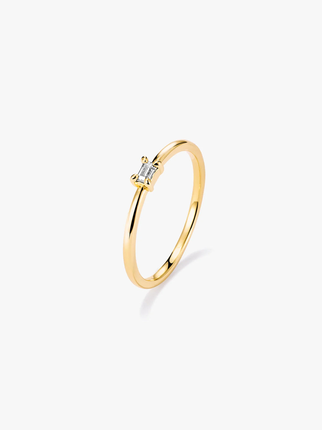 Embrace the allure of a baguette-shaped, lab-grown white sapphire—this is your true love. Add this everyday stacker to your collection.
