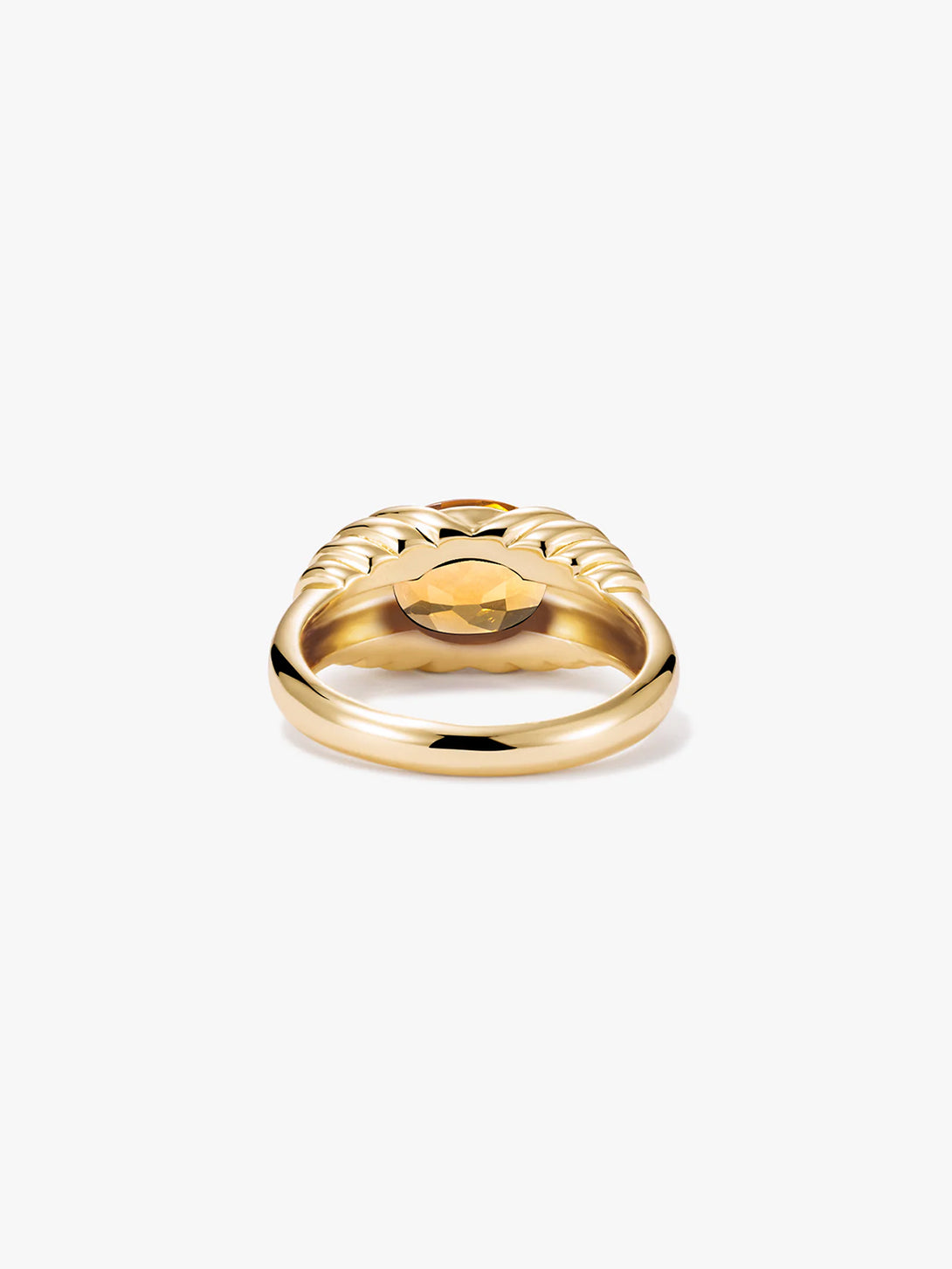 Destined to take center stage in your jewelry box for years to come, it exudes timeless elegance and craftsmanship. Handcrafted in 18k gold vermeil and set with a striking large lab grown citrine gemstone.
