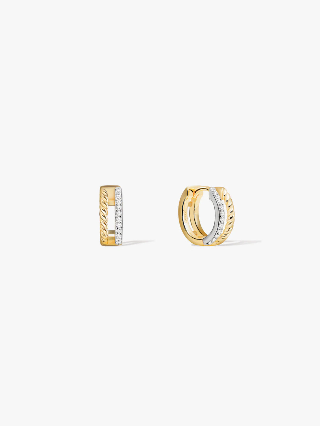 A brilliant combination of pave CZ stones and a twisted design, these earrings radiate sophistication and timeless elegance. Designed to catch the light, they’re the perfect finishing touch to any outfit, whether for a special event or everyday wear.