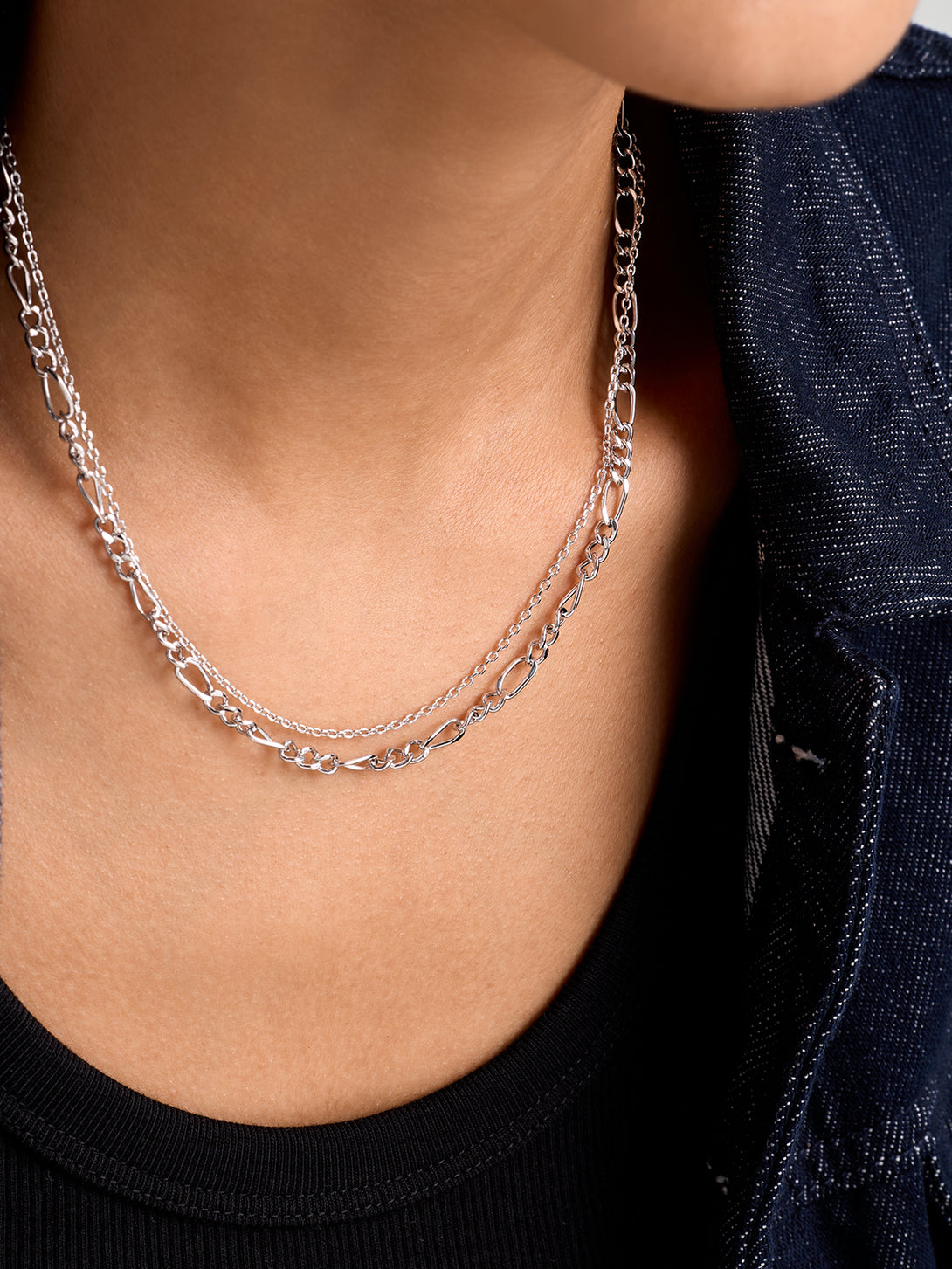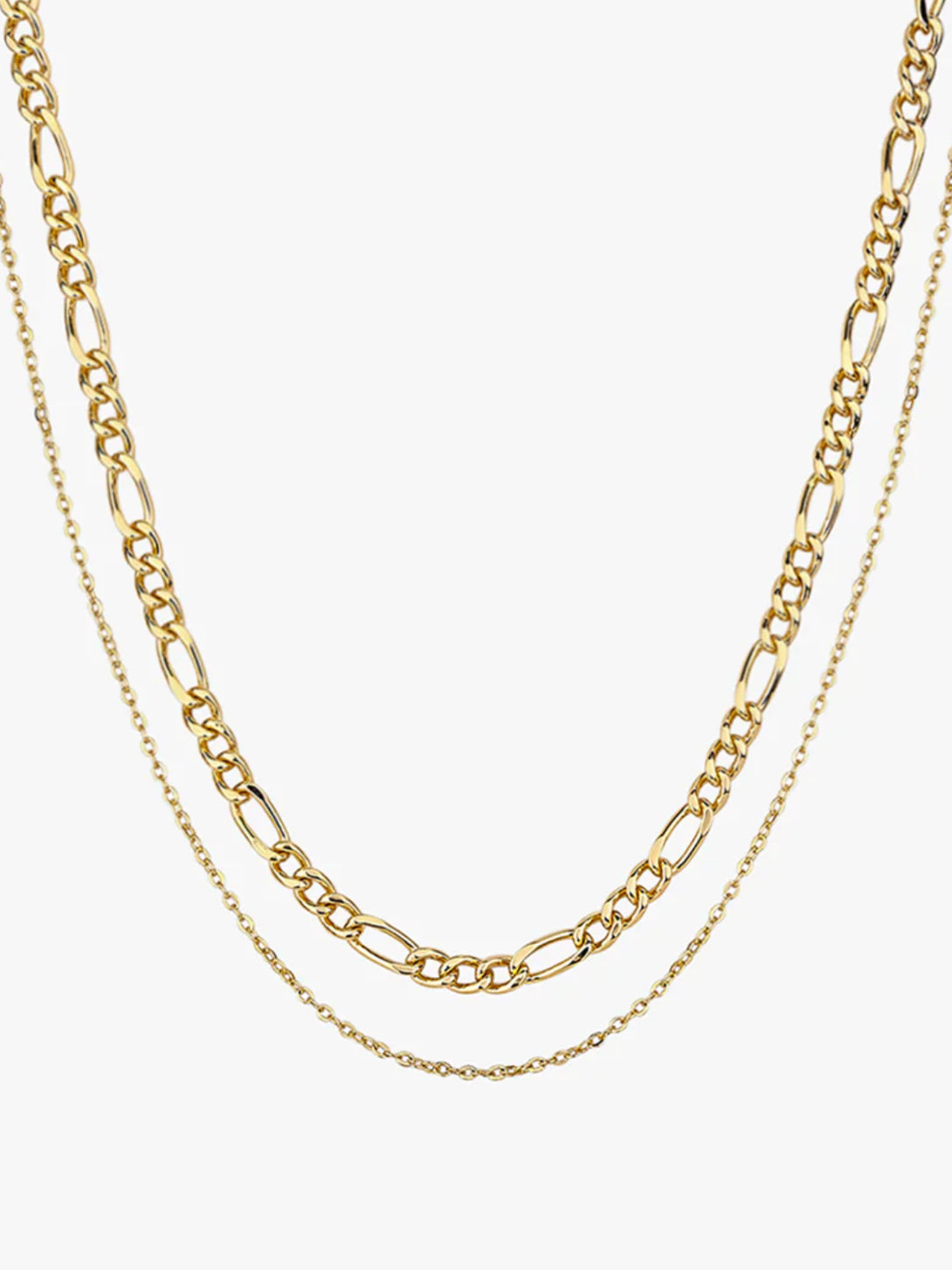 This classical figaro layered necklaces is an absolute showstopper. Expertly plated with 18k yellow gold, it adds a touch of elegance and sophistication to any outfit. The intricate multi-layered design gives it a classic appeal that will never go out of style. Whether you're dressing up for a special occasion or simply adding a touch of glamour to your everyday look, this necklace is the perfect accessory. With its stunning yet durable construction, it's sure to become a treasured piece in your jewelry collection for years to come.