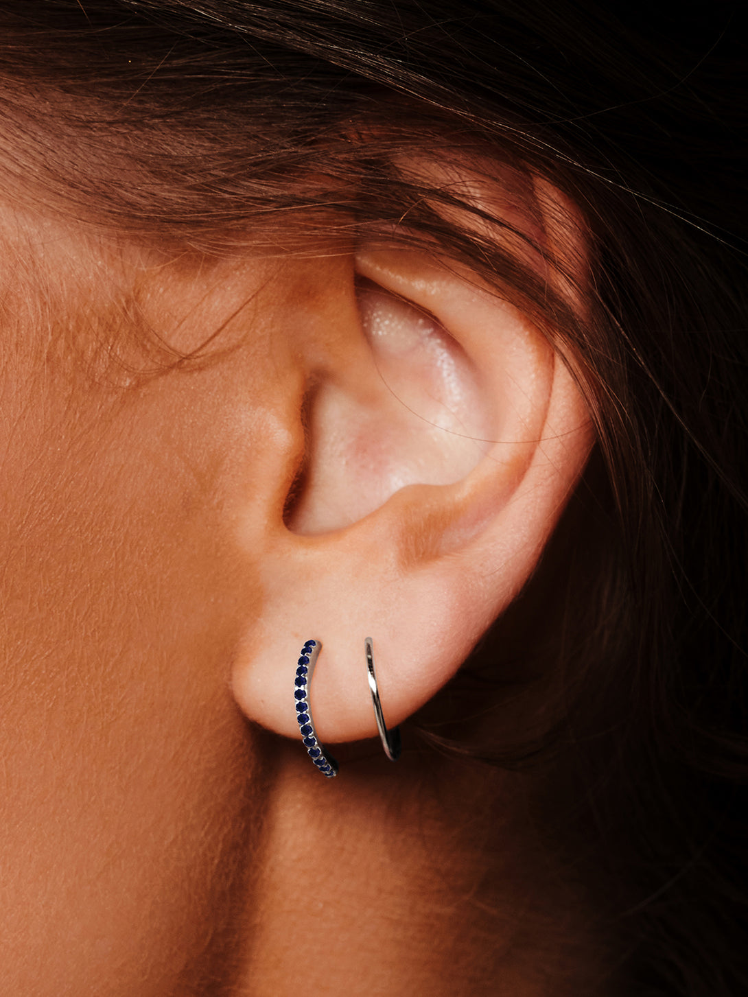 Enhance your style with minimal hardware and twice the impact. Our Elegant Half Pave Double Hoop Earrings twist elegantly for a distinctive appearance that requires just one ear piercing. These stunning earrings offer both a studded and delicate look. Our dual hoop earrings gained immense popularity, prompting us to introduce our latest collection of double hoop earrings. These exquisite pieces are meticulously crafted in 18k Gold Vermeil on Sterling Silver.