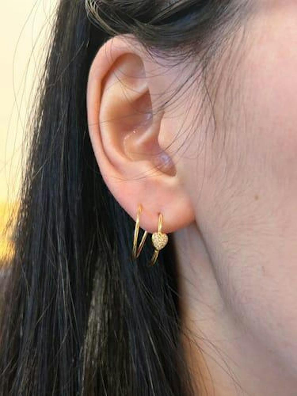 Introducing our Heart Crystal Double Hoops, designed to spiral around with a unique single-piercing feature. These hoops offer a perfect blend of stunning elegance and delicate charm, features the heart in a double hoop design. Chic and lovely, they are a must-have accessory.