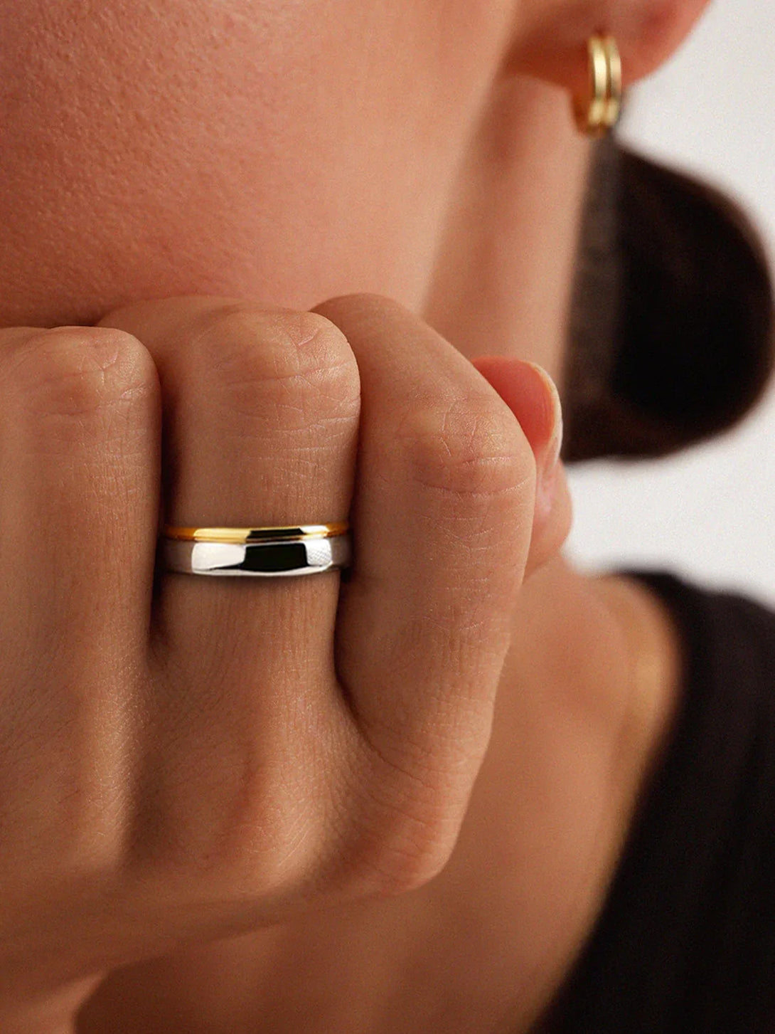 Make a statement with the Mixed Bold Band Ring. A fusion of bold design and intricate detail, this ring is a standout piece that speaks volumes.