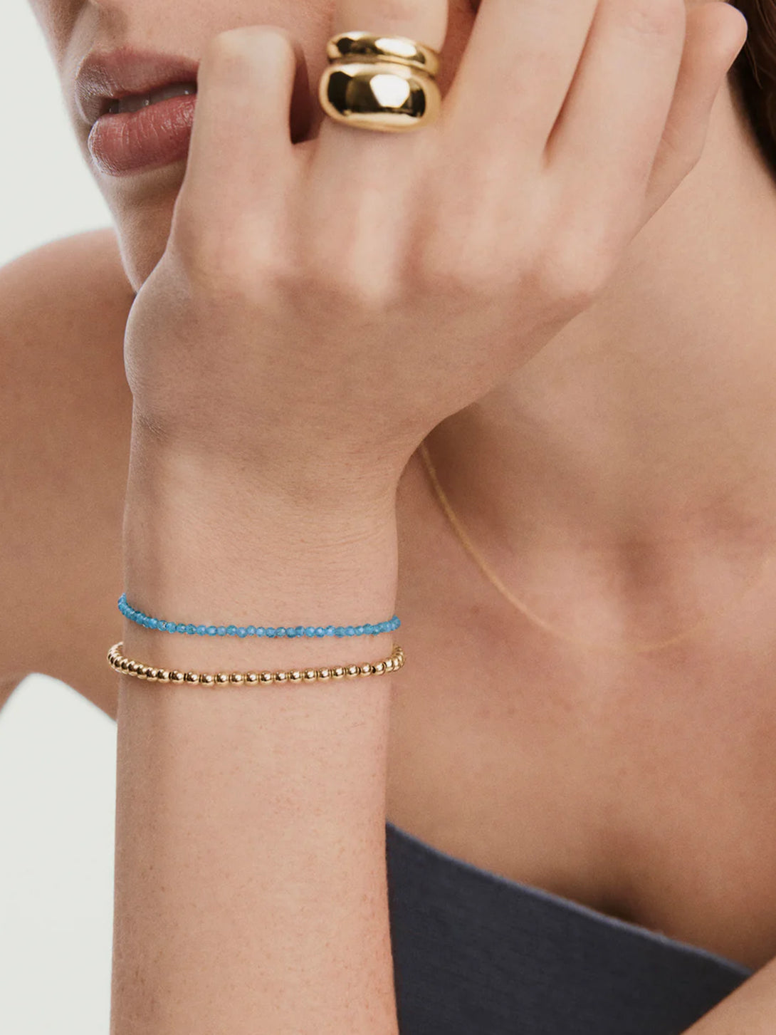 Bright, vibrant, and effortlessly easy to wear. This bracelet features faceted neon apatite beads that catch the light with every move, adding a soft pop of ocean-blue color to your everyday stack. Lightweight and versatile, it’s the kind of piece that layers beautifully yet stands out on its own.
