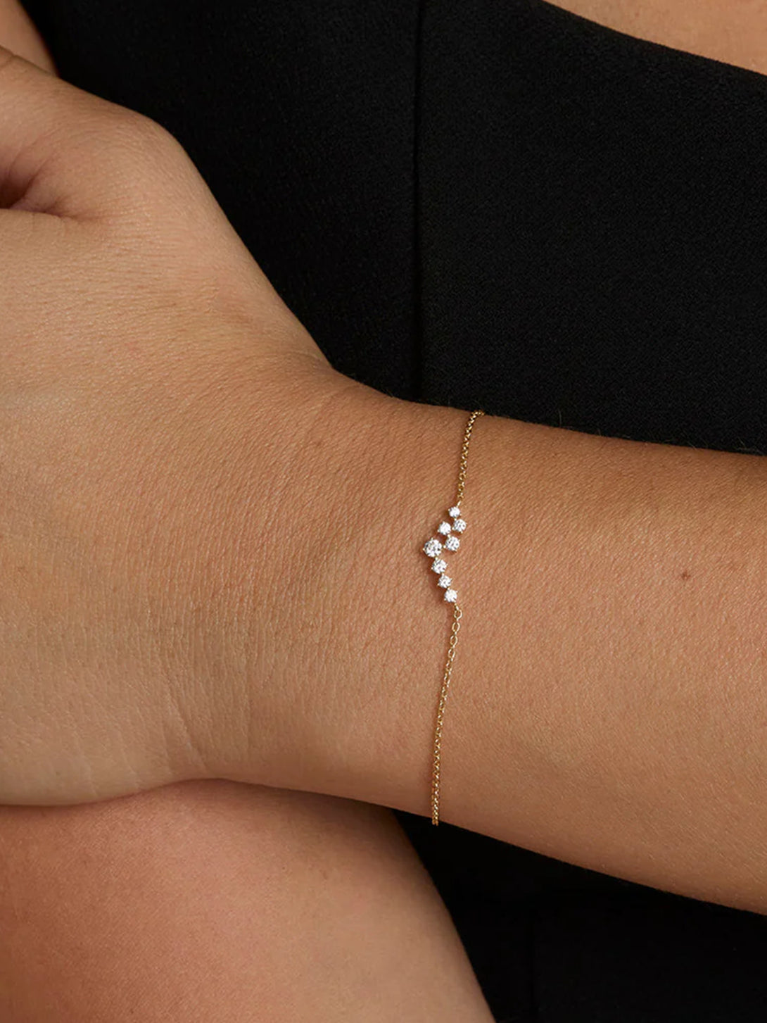 The Sapphire Constellation Bracelet features a scatter of twinkling sapphires arranged like a constellation along a delicate gold chain. A soft, luminous glow that feels effortless on its own—or perfectly layered with your everyday favorites like a letter bracelet or a classic tennis bracelet.
