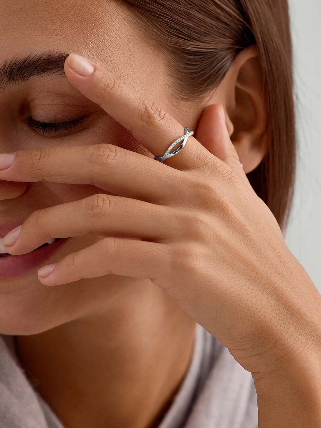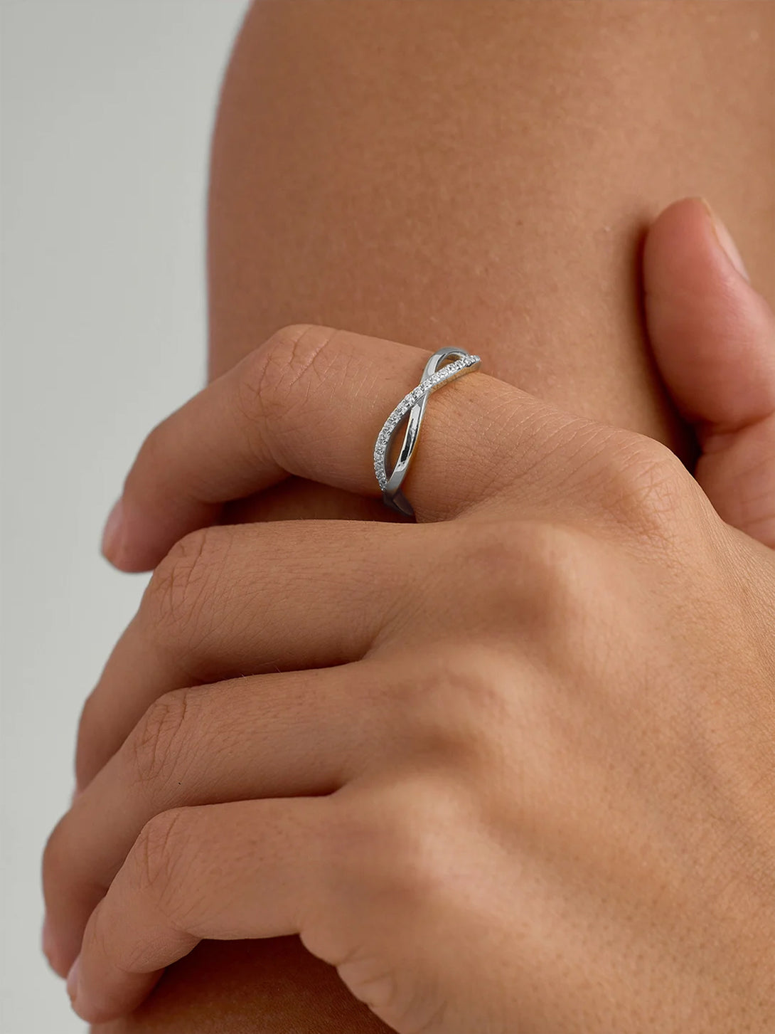 The interweaving pattern of this gold and crystal Infinity band represents endless possibilities. Handcrafted in 18k gold vermeil with cubic zirconia.
