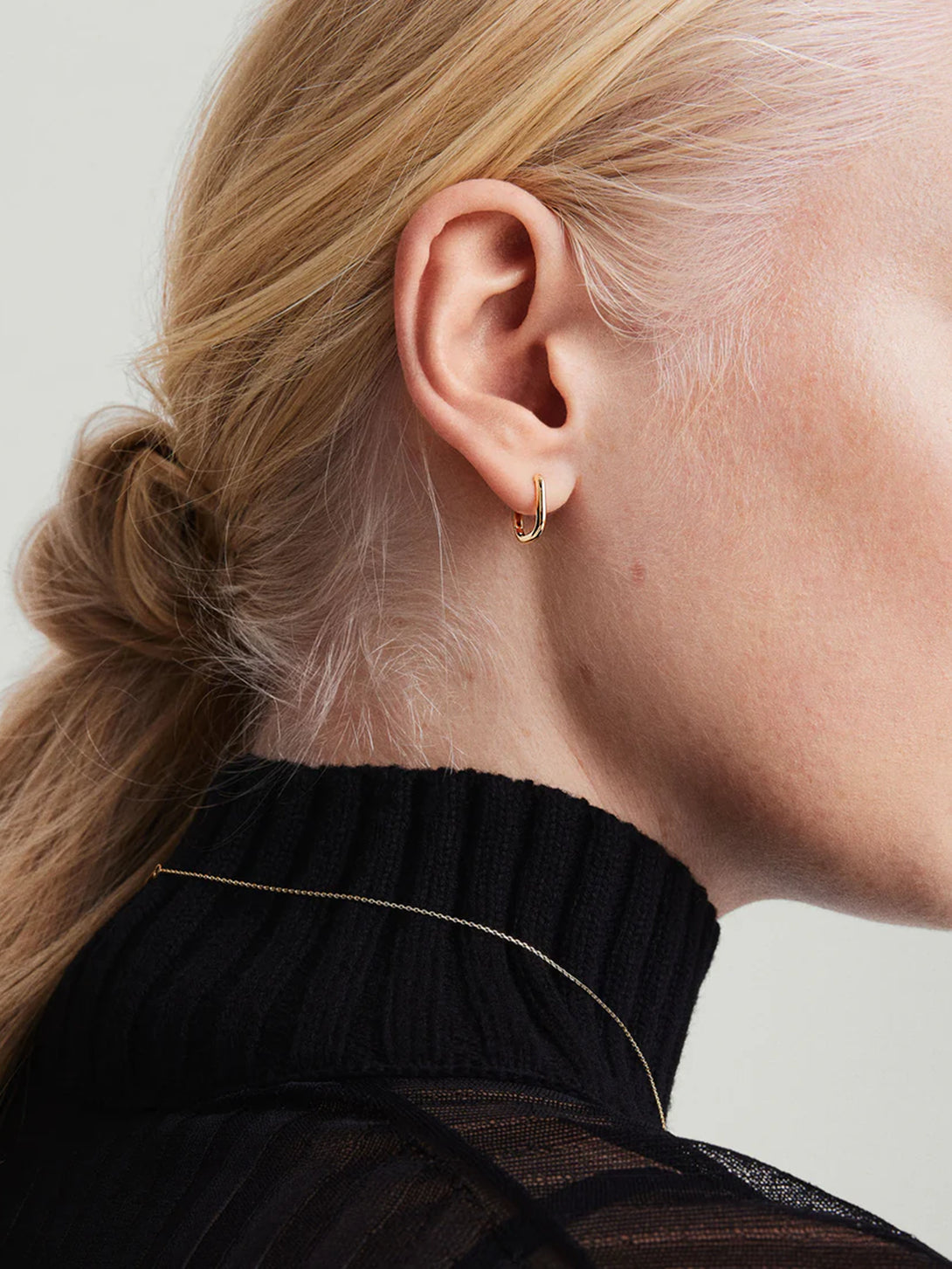 Clean lines, easy shine. These rectangular huggie hoops bring a modern twist to a classic silhouette, designed for effortless everyday wear. Lightweight, sleek, and perfect for stacking—your new go-to pair for any look.